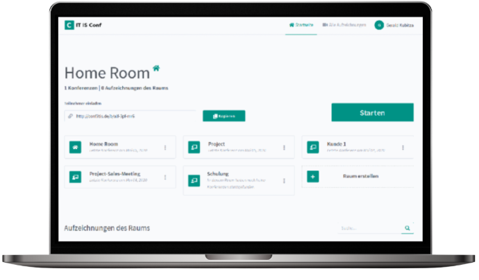 With ITISeasy.team you can create different permanent meeting rooms for specific webconferences, groups or customers, suited for recurring use. In addition, the following settings are available for every created meeting room: